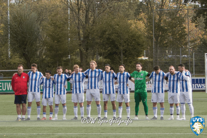 Onder leiding van scheidsrechter C. Peetoom begon UVS sterk aan het duel. Voorafgaand aan de aftrap werd één minuut stilte gehouden ter nagedachtenis aan Theo Honsbeek — een moment van bezinning dat de ploeg van trainer John Hage leek te inspireren.